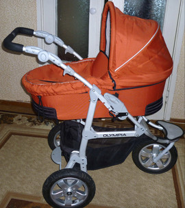 Коляска-люлька Happy Baby OLIMPIA 2 в 1 коляска модульного типа 2 в 1 отвечает всем требованиям активных и молодых родителей: рама сделана из современного легкосплавного алюминия, который не только облегчает коляску, но и смотрится довольно стильно. Хорошую проходимость и мягкий ход, обеспечат большие надувные колеса, на шарикоподшипниковом креплении. Утепленная флисовая обивка создаст тепло и комфорт малышу в прохладное время года. Особенности: пятиточечные ремни безопасности, люлька с деревянным дном и утепленной флисовой обивкой, облегченный прогулочный блок, вместительная корзина для покупок, большие надувные колеса, подножка прогулочного блока не регулируется, спинка регулируется ремнем, в несколько положений до горизонтального. В комплектацию коляски входит: люлька, прогулочный блок, утепленный чехол на ножки, тент, универсальный силиконовый дождевик, москитная сетка. Вес: 13,5 кг., после 1 ребенка, в идеальном состянии.
