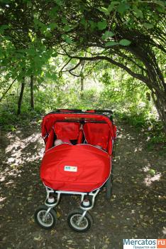 Тип коляски: Универсальная коляска для близнецов и погодок. Многофункциональная и удобная в обращении 4-х колесная коляска с 2-мя поворотными передними колесами. Тип сложения: "книжка". Колеса: большие камерные с подкачкой на спицах.