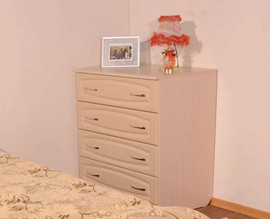 Комод КМ-8 из комплекта мебели для спальни "Венеция". Выполнен из МДФ и имеет четыре больших выдвижных ящика для хранения белья или любых других вещей. Стильный и удобный комод будет отлично смотреться в Вашей спальне.