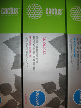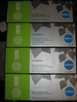 Комплект новых цветных лазерных картриджей HP CS-Q6000A упакованных в коробки, есть два комплекта по 4 картриджа, каждый комплект по 5500 рублей. CACTUS CS-Q6000A создан специально для применения в HP Color LaserJet 2600N. Цвет - черный. Высокое качество картриджа обеспечивает надежную работу и позволяет производить отпечатки надлежащего качества. Ресурс - 2500 страниц. Приобретая картридж CACTUS CS-Q6000A для лазерного принтера HP Color LaserJet 2600N, вы сэкономите множество средств на покупке расходных материалов, не теряя при этом качества.