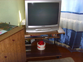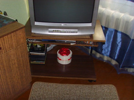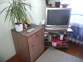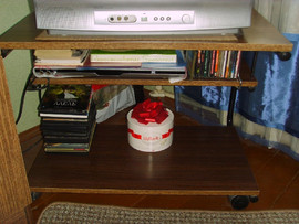 Также в комплект входит столик, в котором есть 2 полки для удобства. Стол можно использовать по-разному: под технику, сервировочный или, как сейчас модно, - для ноутбука (так как столик на колесиках). На нижней полке можно расположить принтер. Размеры стола - 52х66х36 (выс, шир, глуб).