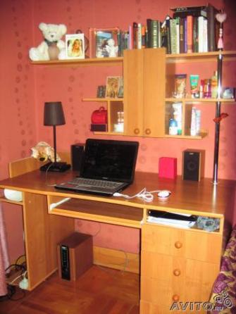 есть отделение для системного блока, выдвигающаяся полка для клавиатуры, подставка под монитор. Над столом 4 уровня полок. На фото представлен вариант без последней полки сверху и подставки под монитор.