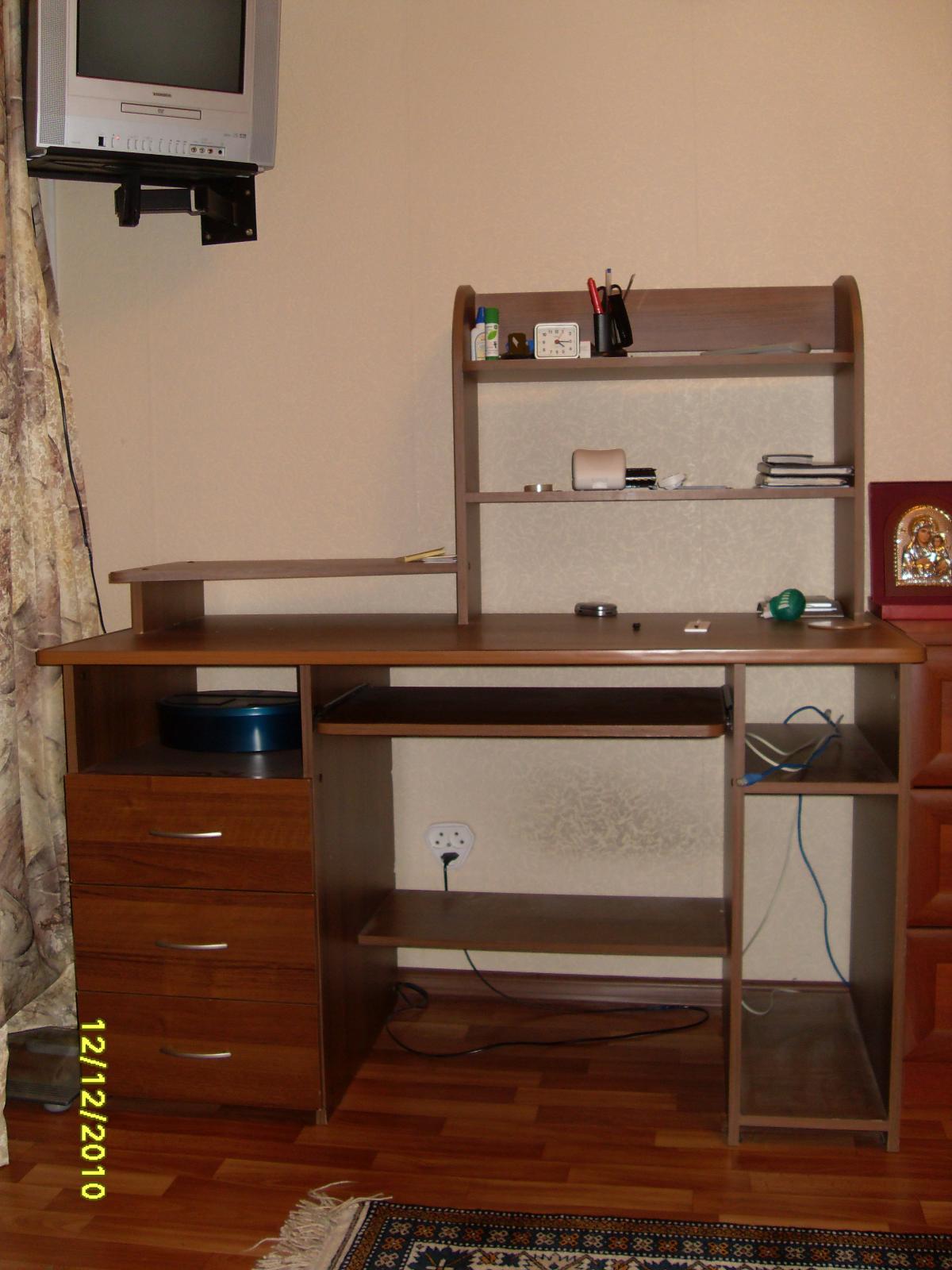 Продам стол компьютерный, б/у, в хорошем состоянии. Размеры: ширина 130, глубина 67, высота 75+60 см. Тумба с 3 ящиками, надстройка сьемная.