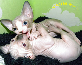 Глаза у котика с темным носиком голубые, у другого в развитии.Качество кожи голая приятная на ощупь. Котята ходят в лоток,кушают самостоятельно.Можно для души или для разведения (потенциальный шоу класс).