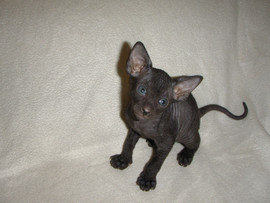 Котенок Петербургского сфинкса, девочка, черная пантера с изумрудными глазами, возраст 1,5 месяца от достойных родителей. Для души и разведения. Очень игривая, любит сидеть на руках. Кушает сама, приучена к лотку и когтеточке! Будет прекрасным компаньоном Вам и может оказаться чудесным, незабываемым подарком вашим близким!