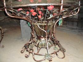 Столешница - кованное стекло 16мм. Диаметр 1500мм. Высота стола 800мм.