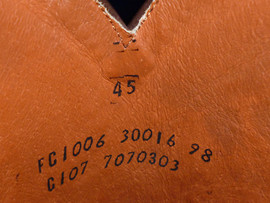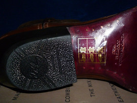 Кожаная подошва изготовлена по технологии 'GOODYEAR WELT' и усилена двумя рядами гвоздей: деревянных и медных.