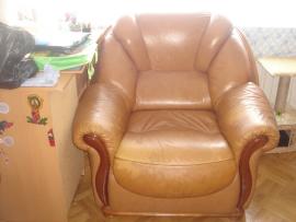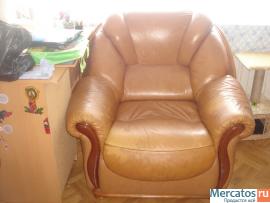 кожаные диван (французская раскладушка) + кресло бывшие в употре г. Сочи
