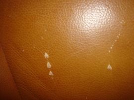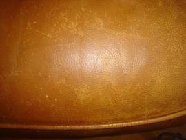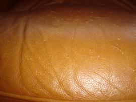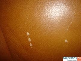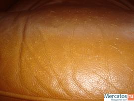 Материал покрытия комбинированный: кожа + кожезаменитель. Комплект мебели бывший в употреблении, имеются царапины на поверхности (от кота) и потёртости от эксплуатационного износа. В остальном в хорошем состоянии.