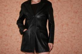 Продается кожаный пиджак черного цвета, размер 42-44, б/у 1 сезон, состояние хорошее. Пояс прилагается.