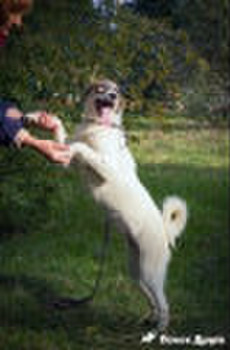 Бьянка - совсем молоденькая девочка, близкий метис лайки. Она и по характеру очень похожа на лайку: активная, игривая, в то же время очень ласковая и очень смышленая девочка.