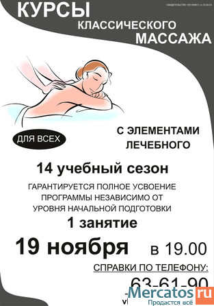 19-го ноября начинаются занятия по классическому массажу. Курс состоит из 12 занятий.