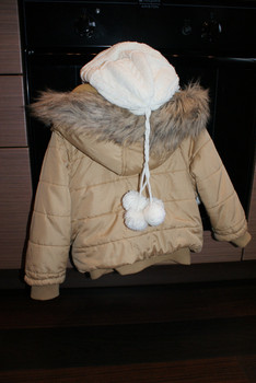 Куртка (америка)золотая( 104-110) внутр рука 25 см.длина куртке 39см.500р + к куртке шапочка белая с золотыми блестками.