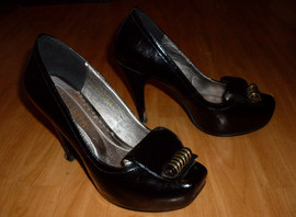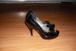 Туфли 37р., лаковый кож.зам., интересная модель, очень удобные. Требуется заменить набойки.