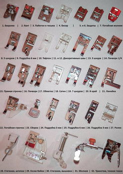 Лапки подходят для большинства швейных машин: Brother, Janome, Juki, Toyota, Jaguar, Astralux, Aurora и др.