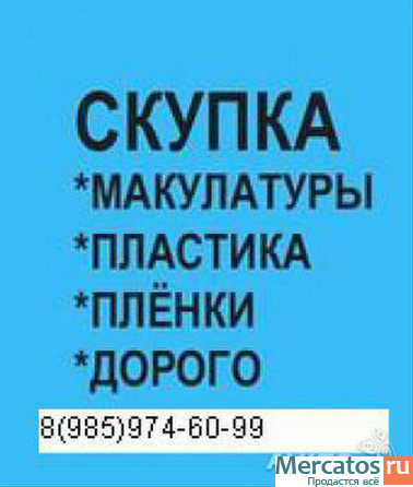 Производственно-заготовительное предприятие ООО " Аванта " на постоянной основе купит вывезет в Москве и облости следующие виды вторсырья: макулатуру всех сортов и в любом виде (картонные каробки ,шпули, втулки, гильзы бумажные, газеты, журналы, книги, архивы, списанные документы, отходы типографий, обрезь, непроданные тиражи) производственные, складские отходы стрейч пленки, полиэтилена,пластмассы,канистру бу.В виде брака производства, некондиции, складские остатки, бракованные изделия.