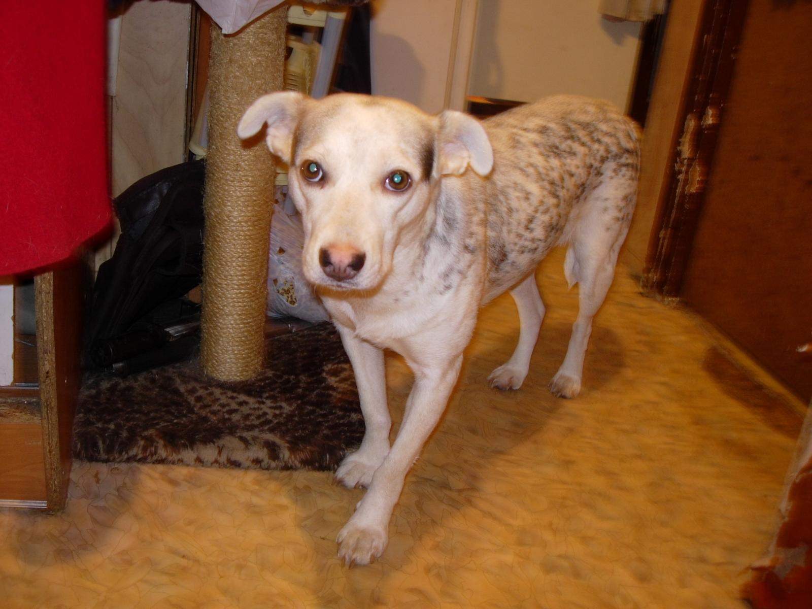 Умная,симпатичная,маленькая собачка была спасена от отстрела.Боязливая,осторожная к другим собакам и людям, которых не знает.