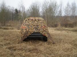 Маскировочная сеть. Размер 3 на 6 метров. Цвет - "поле". Этой сетью (площадь - 18 кв. м.) можно накрыть для маскировки автомобиль или оборудовать большой скрадок. Многие используют для декорирования заборов на даче, т.к. соседям через нее ничего не видно, а это, поверьте, новые ощущения. Цена - 2400 руб. .