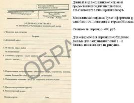 Справка для школьника в лагерь по форме 079у - 600р,