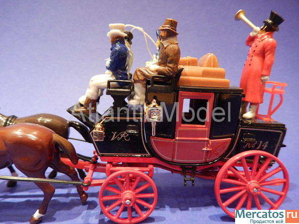 Модель в масштабе 1/43 производства фирмы Matchbox. Дилижанс материал - металл. Дилижанс 19 века, который использовался для перевозки почты и пассажиров. Экипаж запряженный четверкой лошадей и шесть фигурок людей. Серийная, ручная окраска, отличное исполнение фигурок и упряжи, великолепное изготовление лошадей и кареты. В коробке. Отличное, коллекционное состояние. Выпущен в 1992 году. Раритет. Не выпускается. Посмотрите другие наборы и модели и Вы, найдете много интересного для своей коллекции или для ценного подарка. Представлены масштабы 1/43, 1/32, 1/35, 1/72, 1/87 на Античность, Средневековье, Тридцатилетняя война, Семилетняя война, Вестерн, Вторая мировая война, Ренессанс, Современные армии, Гражданская война в России, Сражение за миссию Аламо, Гражданская война в Америке.