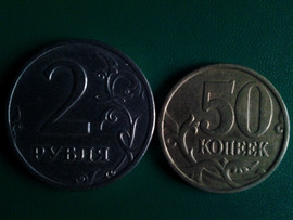 Предлагаю две монеты 2рубля и 50 копеек 1999года С-Пмд малого чекана. См.фото.