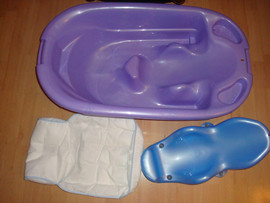 Продам ортопедическую ванночку для малыша фиолетового цвета за 400 р. В подарок - матрасик для купания в ванне!