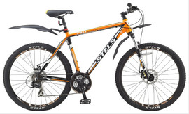 У велосипеда Stels Navigator 710 disc, 21 скорость, что с легкость позволит Вам въехать на любые пригорки и неровности нашей земли. С облегченной алюминиевой рамой, общий вес 15.5 кг, справиться даже ребенок, без больших усилий сможете поднять его на руки и затащить куда Вам угодно. Двойные алюминиевыми обода, позволят Вам не задумываться о прыжках и бордюрах, т.к. они весьма прочные и надежные. Дисковые тормоза, остановят Вас тогда когда Вам угодно, в любую непогоду. А амортизированная вилка с ходом 100мм позволит с легкостью прокатиться как по ровной, так и по пересеченной местности, с комфортом.