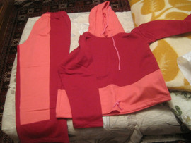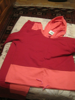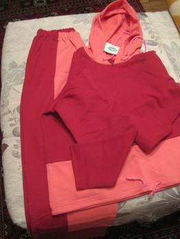 Новый тёплый костюм в бордово-розоватых пастельных тонах с капюшоном