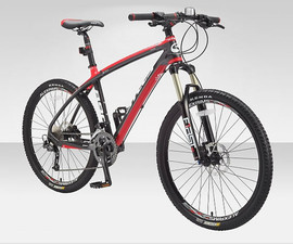 Горный велосипед с колесами 26 дюймов и карбоновой рамой.