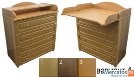 Все комоды имеют закруглённые края, что гарантирует безопасность при их использовании.Имеют откидной пеленальный столик,увеличивающий глубину изделия,благодаря которому Вы сможете не только перепеленать малыша,или провести необходимые процедуры,но также её порсторных размеров вполне достаточно для проведения массажа. Впоследствии пеленальный столик можно снять и трансформировать комод в классический для хранения вещей и принадлежностей. Ящики выдвигаются плавно и бесшумно-роликовые направляющие,Немецкий механизм.В наличии комоды,как с гладким,так и с -резным фасадом.Выпускаются в трёх цветах.