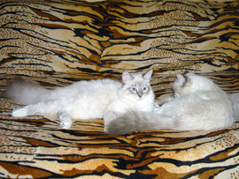 О себе: 6,5 месяцев, порода – невская маскарадная, окрас блю-тебби-поинт с белым, ласкушечики и мурчалочки, игривы и любознательны. Крупные не по годам, в белоснежных шубках, с невероятно выразительными ярко-голубыми глазами и чудесными кисточками на ушках. Неоднократные номинанты и победители международных выставок. Отмечены экспертами, как очень и очень перспективные. В родословной лучшие питомники Москвы.