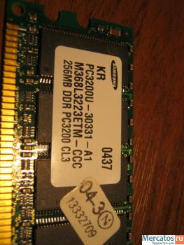 Продаю оперативку бу рабочая DDR DIMM PC-3200 256Mb SAMSUNG Original