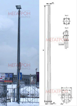 Опоры освещения силовые ОГС-10-400: высота 10м, нагрузка 400кг, вес 272кг, нижний d=210мм, верхний d=120мм