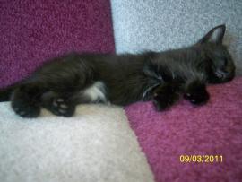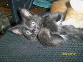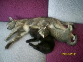 отдам красивых котят в хорошие руки. котятам 2 месяца,девочки, серая и черная. мать - Сибирская кошка, Отец - британец.