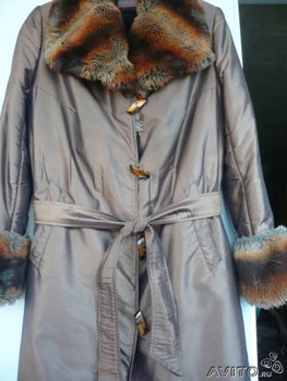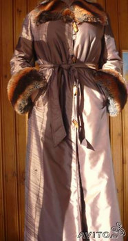 Длинное yтеплённое пальто-плащ из непромокаемой ткани с искусственным воротником (под шиншилу) и такой же отторочкой на рукавах на высокую девушку,женщину. Боковые карманы.Имеется пояс. Пальто смотрится очень красиво.В комплекте к пальто - шапка и шарф (100% шерсть).