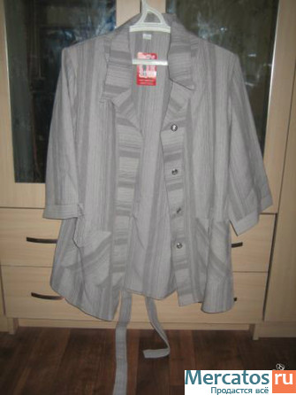 Пиджак серый с поясом (новый), р.52, дл.74см.