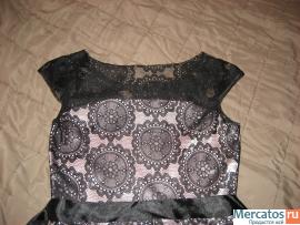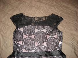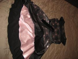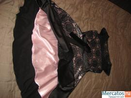 Платье с коротким рукавом. Черное кружево на розовом шелке. Черный шелковый пояс. Идеально подходит для вернего выхода