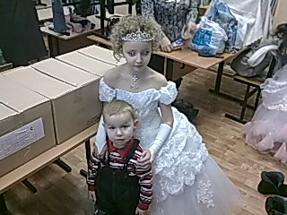 возраст 6-8лет (корсет утягивается,полнота роли не играет в корсете есть запас) .в школе заняли 1-ое место по платьям,спешите и вы нарадить своего ребенка:) (фото с телефона)