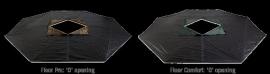 Положение «O»: открывается из центра, позволяет устанавливать печь, разводить открытый огонь, сметать мелкий мусор с пола, не открывая палатки;