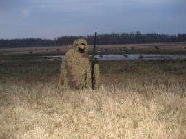 Производим и продаем идеальную маскировку для реализации Ваших коварных планов при охоте на гуся. Преимущества: держит ветровую нагрузку, не горит, не гниет, не мокнет, вес 2-4 кг. Изготовлено на основе маскировочной сети из пленки специального назначения в виде мишуры. Цветовая гамма - сухая трава на поле с которого недавно сошел снег.