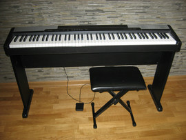 Модель CDP-100 обладает такими функциями, как наложение тембров, транспонирование, метроном, настройками, разъемами для педали, наушников, MIDI IN/OUT. Встроенная акустика – это два практичных динамика два на двенадцать см по восемь Вт. В комплект входит педаль, адаптер, стойка, мягкий удобный стульчик. В отличном состоянии, в эксплуатации с сентября 2012 года.