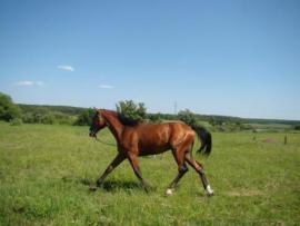 "Фаер"- Гнедой жеребец, п./к, 20.03.08г.р., рост 172 см. Отец – Очерк (тракен), мать – Гюльчатай (п./к). Конкур, Заезжен, напрыган на 1м (на корде), на отличных движениях. Документы ВНИИК.
