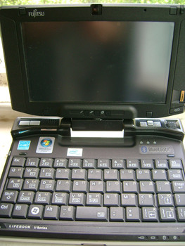экран 5.6 дюйма. сенсорный экран с разрешением 1024 x 600 точек. Экран поворачивается. процессор Intel A110 (800 ГГц) на базе платформы от Intel - Ultra Mobile 2007, 945GU Express чипсет, с интегрированной видеокартой 3D Accelerator, оперативная память до 1 Гб, жесткий диск объемом 40 Гб, Bluetooth, вебкамера 0.3 мегапикселя (640 x 480), WiFi 802.11a/b/g, операционная система Windows Vista