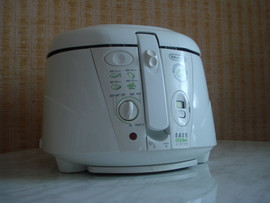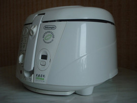 Фритюрница с отверстием для контроля масла, смотровым стеклом (чтоб еда не пригорела). Модель с непригорающим покрытием полости. При нагреве пустой фритюрницы включается термозащитное устройство, блокирующее её работу. Благодаря вращающейся корзине эта фритюрница работает с небольшим количеством масла. Для приготовления максимального количества 1 кг картошечки фри понадобиться растительное масло 1,2 л , время 15 мин.