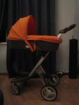 продается коляска stokke xplory, б/у в отличном состоянии, цвет оранжевый, комплект: