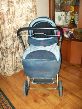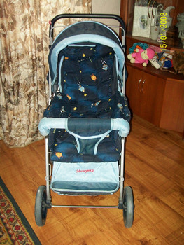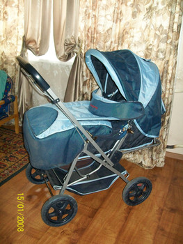 Продам коляску б/у в хорошем состоянии. Зима-лето "Мишутка", сине-голубая, 3 положения спинки, цена 1500 руб.