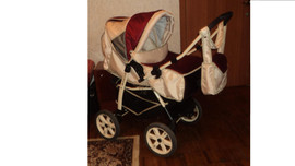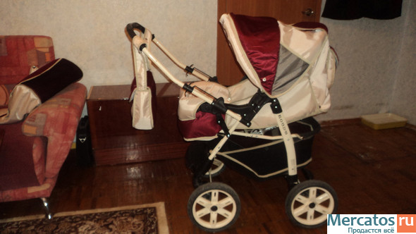 Продам коляску трансформер. Бу, состояние хорошее, цвет бежевый с бордовым. Три положения спинки, сумка для мамы, дождевик, перекидная ручка, колеса пластиковые, легко снимаются, коляска легкая.