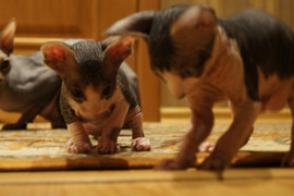 Очаровательные котята Канадского сфинкса. Возраст 3,5 мес. К лотку и когтеточке приучены. Две девочки.