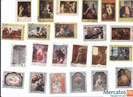 Крупная коллекция марок на разную тематику (искусство, автомобили, самолёты, поезда, известные люди, события, животный мир и т.д.) Марки СССР, Монголии, Кубы и др., примерно с 1940 по 1990 года.