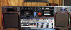 ЦЕНА ОКОНЧАТЕЛЬНАЯ. Sharp GF-800Z (BK), output power RMS 26 Вт (13 + 13 Вт), 10% distortion, frequency response 30 Hz – 14000 Hz (normal), 30 – 16000 Hz (Cr O2), 30 – 17000 Hz (metal), signal/noise ratio 55 дБ (Deck 1, playback), 50 дБ (Deck 2, recording), Input impedance: External mic - 600 Ом, Phono/line in - 50 кОм, Loaded impedance: Headphones 8 - 32 Ом, External speakers 8 - 16 Ом, Line out 0.6 Вт/50 кОм, RADIO Frequency range: AM 526.5 - 1606.5 кГц, SW1: 2.3 - 7.3 кГц, SW2: 7.3 - 22 МГц, FM: 87.6 - 108 МГц, Speakers: 16 см free-edge woofer х2, tweeter х2, Impedance 8 Ом, 68х23х21 см, 8.8 кг.